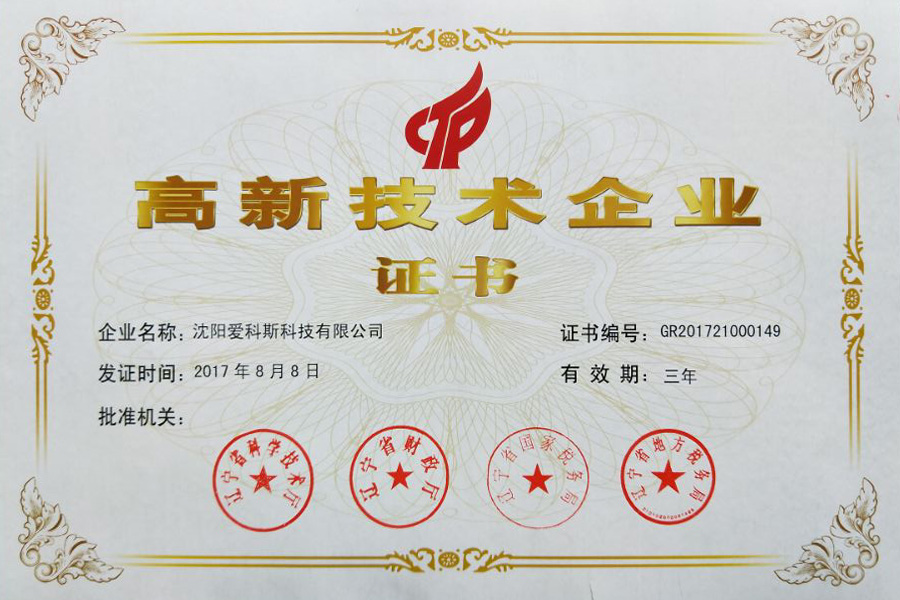 2014/11 沈陽(yáng)愛(ài)科斯科技有限公司成立,注冊(cè)資本500萬(wàn)人民幣